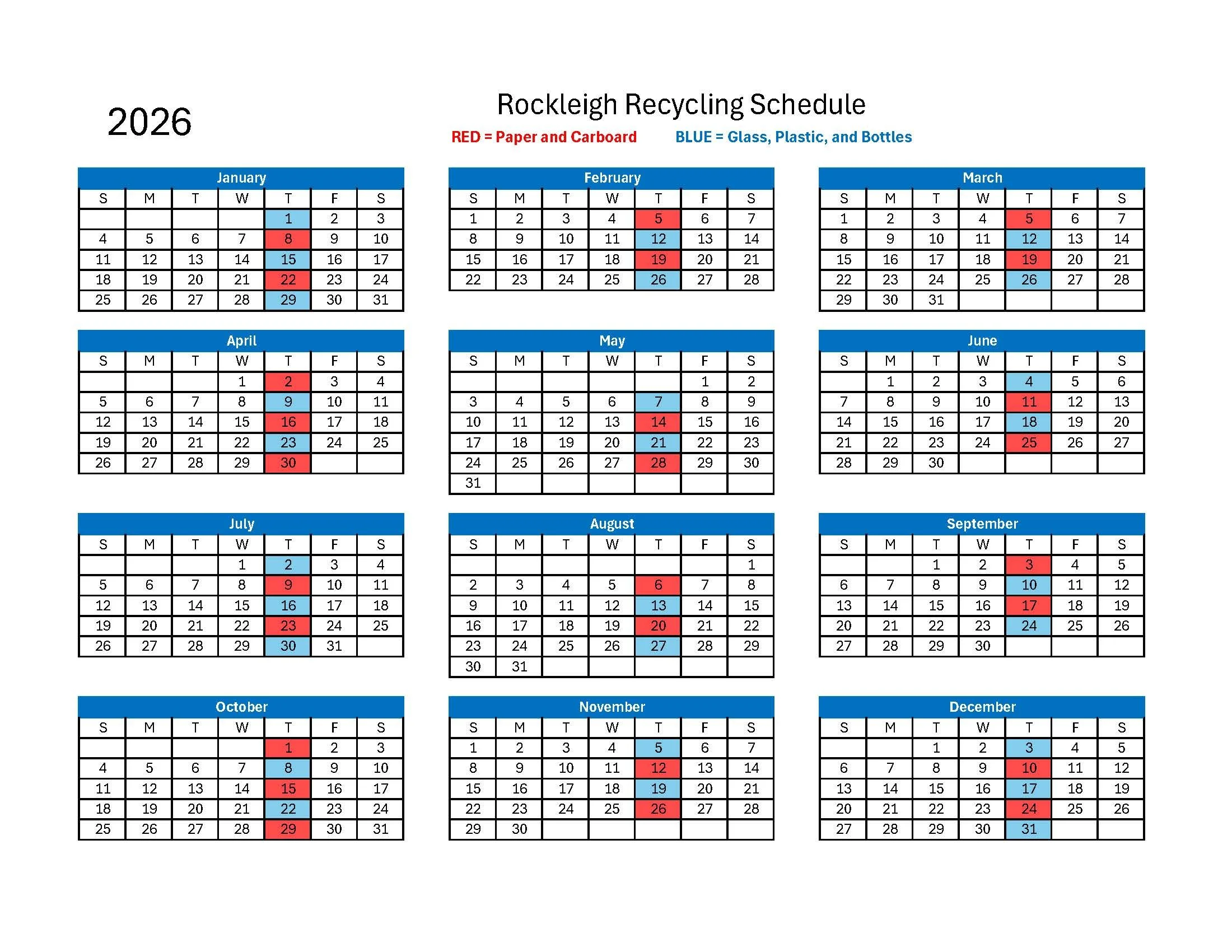 2026 Recycling Calendar